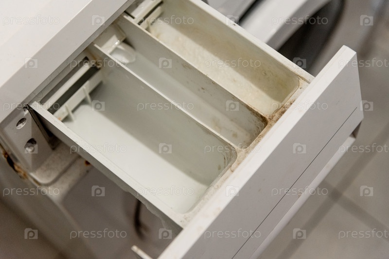 Грязная коробка стиральной машины для подноса, покрытого моющим средством и известковым слоем твердой воды