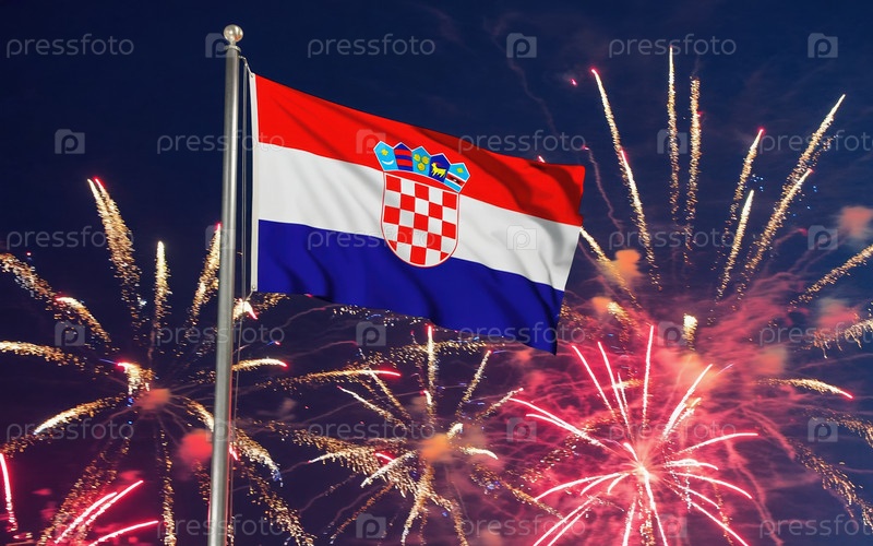 AI генеративный Национальный флаг Независимости Хорватии, фон с фейерверком