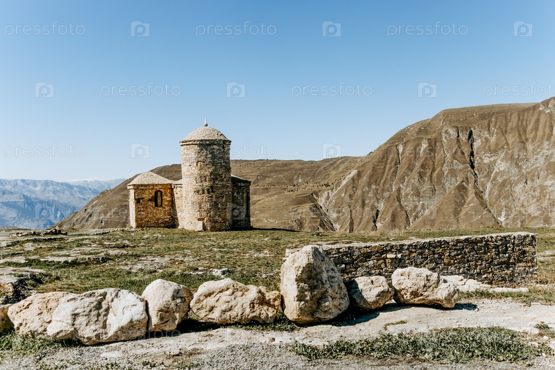 Маленький камень старой исламской религии мусульманской мечети в горах Дагестана, Россия