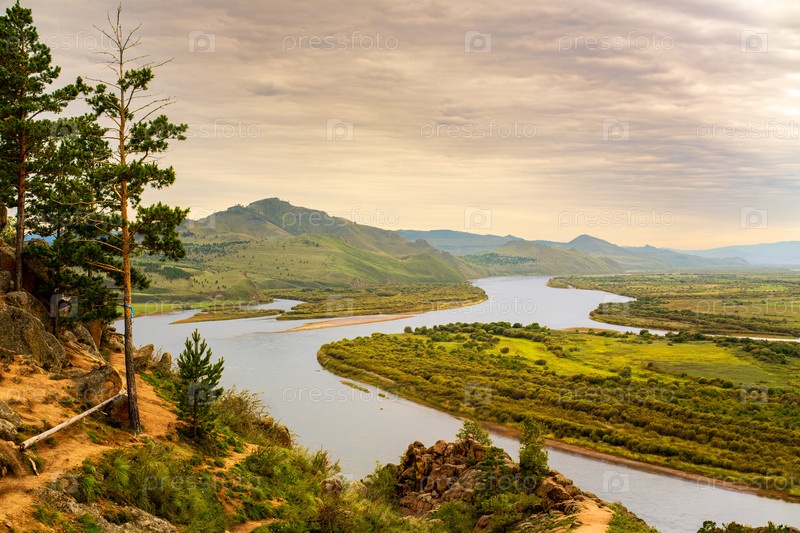 Вид на реку Селенгу с горы Омулевая. бурятия