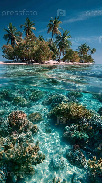 Красивый красочный коралловый риф и тропический остров