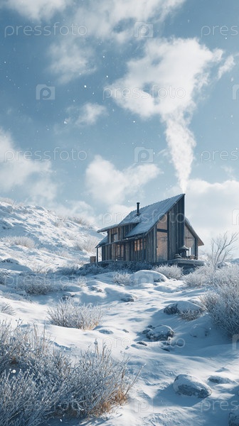Зимой идёт снег, дом покрыт снегом
