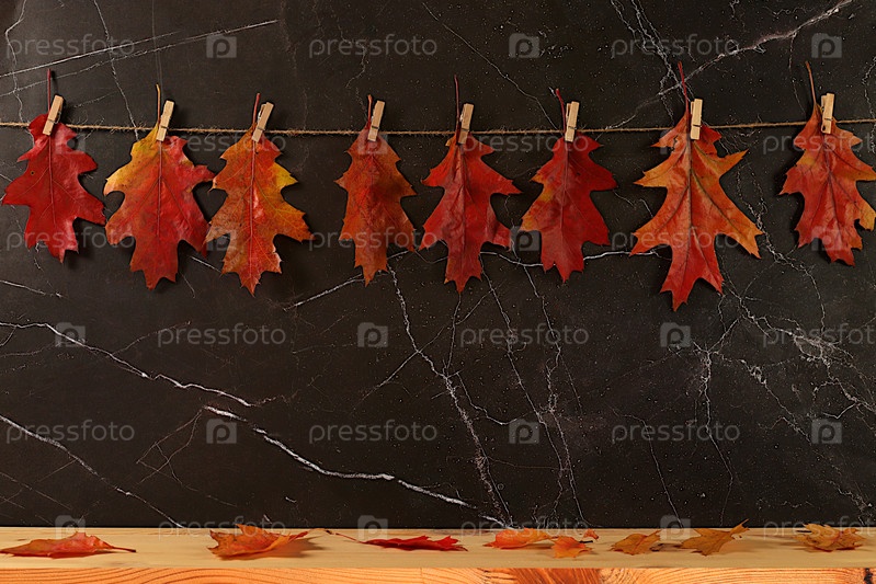 Пустая деревянная панель с кленовыми листьями на кухонном фоне, минималистская осенняя концепция, творческая осенняя композиция и баннер для отображения