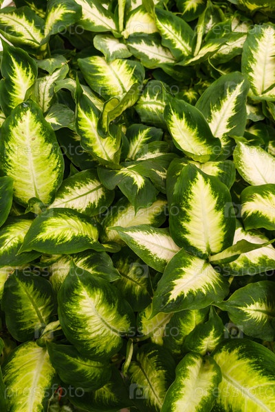 Красивый вид из близкого расстояния на пышные листья Dieffenbachia демонстрирует ярко-зеленые и кремовые белые узоры.Идеально подходит для природы, ботаники и садоводства