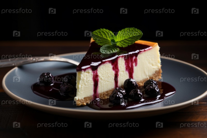 Сырный торт со свежими ягодами на деревянном фоне