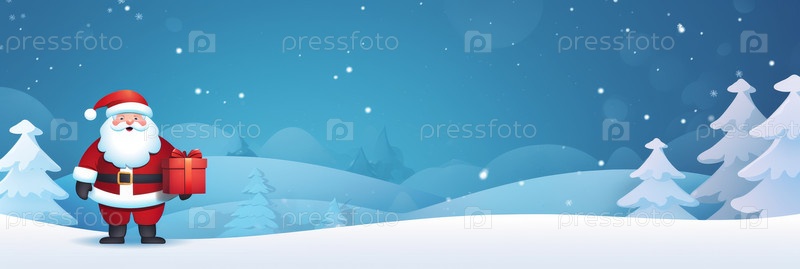 Санта-Клаус гуляет по заснеженному ландшафту, распространяя праздничные аплодисменты с снежинками и пожеланиями Счастливого Рождества