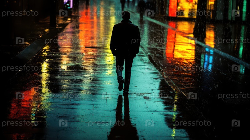 Прогулка по дождливой улице с неоновым освещением ночью
