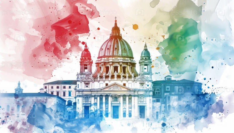 Римский Ватикан Италия: Иллюстрация акварельного искусства