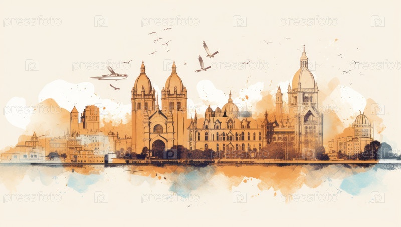 Акварельные краски с рукописным эскизом Ворота Индии Мумбаи, Индия в иллюстрации