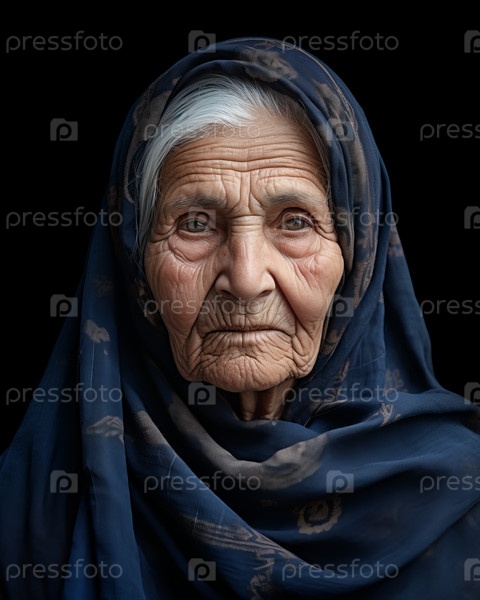 Портрет великолепной, красивой афганской бабушки в темном месте с блестящими прекрасными глазами, смотрящими в камеру