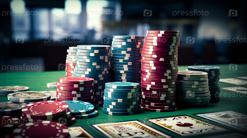 Покерные фишки на игровом столе с драматическим освещением