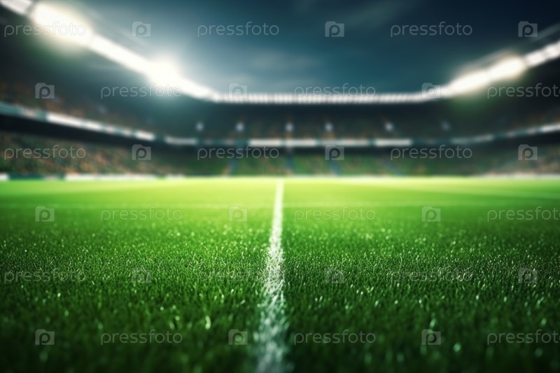 Пустой футбольный стадион захвачен пышной зеленой травой