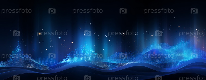 Движение неоновых синих точек, образующих цифровое сетевое соединение на темном фоне - это абстрактный футуристический фон