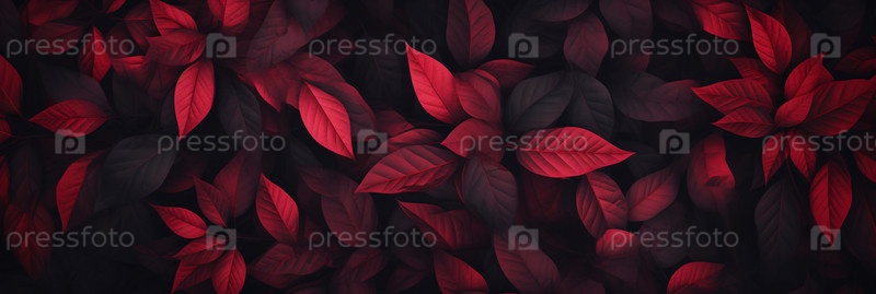 Клубовый снимок пышных красных листьев поинсетсии, демонстрирующих их яркий цвет и детальную текстуру, идеально подходит для праздничного сезона