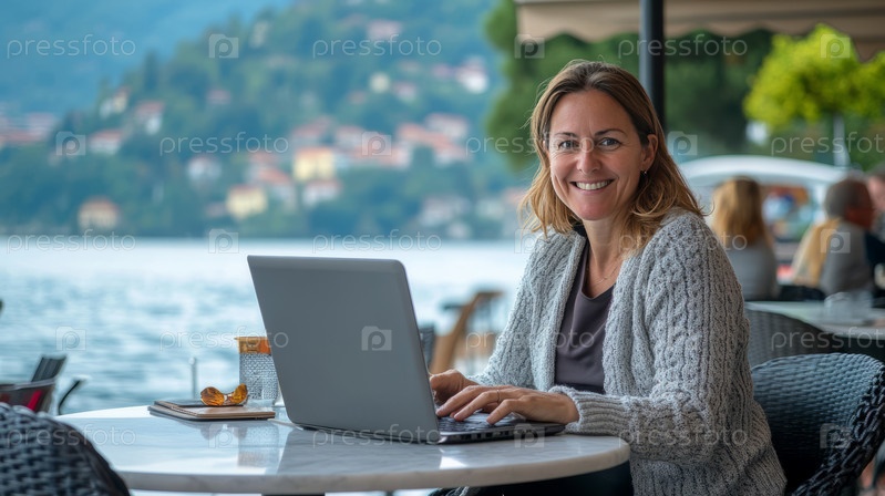 Наслаждаться удаленной работой в спокойной окружающей среде на открытом воздухе у озера, в окружении гор и пышного зелени