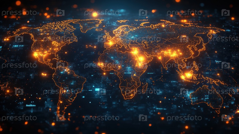 Светящаяся цифровая карта мира с футуристическими соединениями