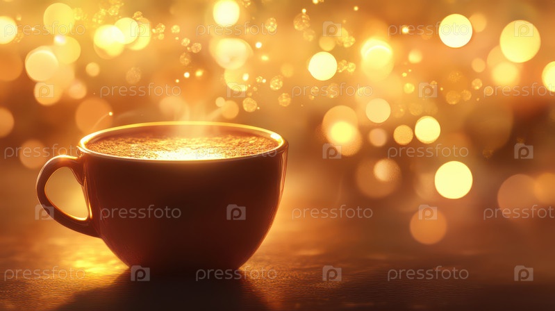 Уютная чашка кофе с теплыми золотыми огнями