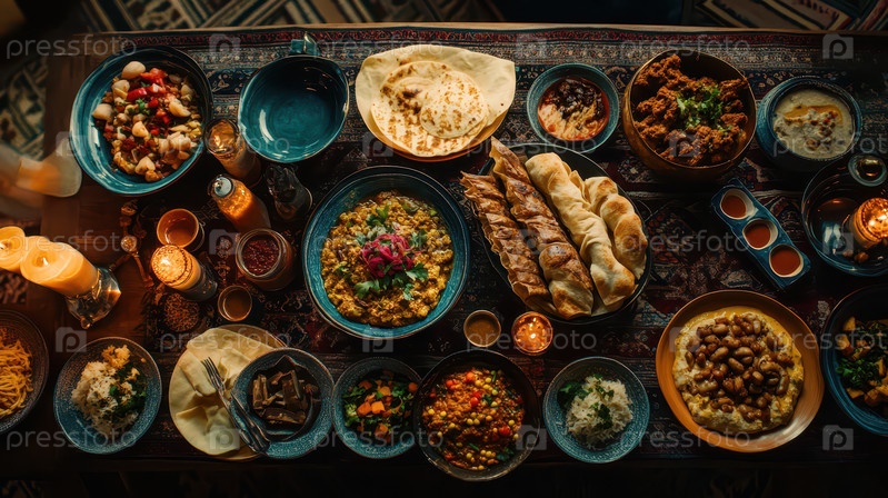 Традиционный ближневосточный праздник с различными блюдами