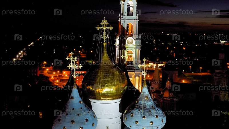 Сергиев Посад, Россия.Троица-Сергийская Лавра - крупнейший мужской монастырь Русской Православной Церкви с долгой историей.Расположен в центре Сергиева Посады.В ночное время вид из воздуха