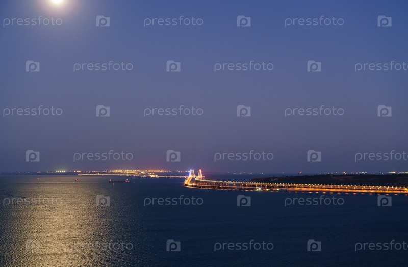 Ночной вид Крымского моста. Просвещенный мост. Лунный путь. Лето
