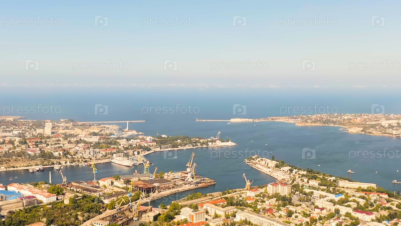 Севастополь, Крым. заливы города Севастополя летом в солнечную погоду. суда, вид с воздуха