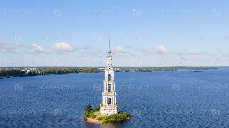 Колокольня собора Святого Николая (известная как затопленный колокол), вид с воздуха