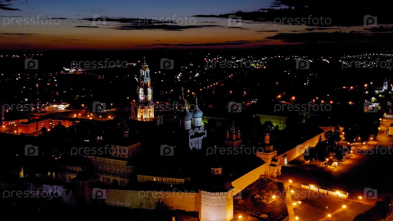 Сергиев Посад, Россия.Троица-Сергийская Лавра - крупнейший мужской монастырь Русской Православной Церкви с долгой историей.Расположен в центре Сергиева Посады.В ночное время вид из воздуха