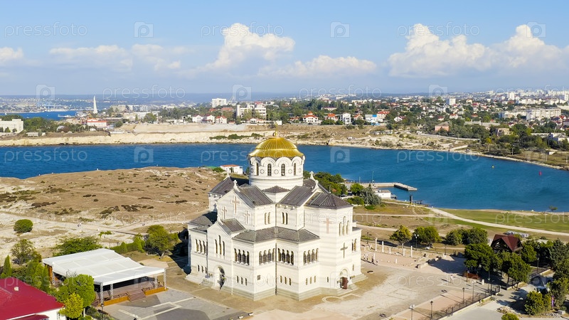Севастополь, Крым. Владимирский собор в Херсонессе. Херсонская Таурида - основана древними греками на полуострове Геркулеса на крымском побережье, вид с воздуха