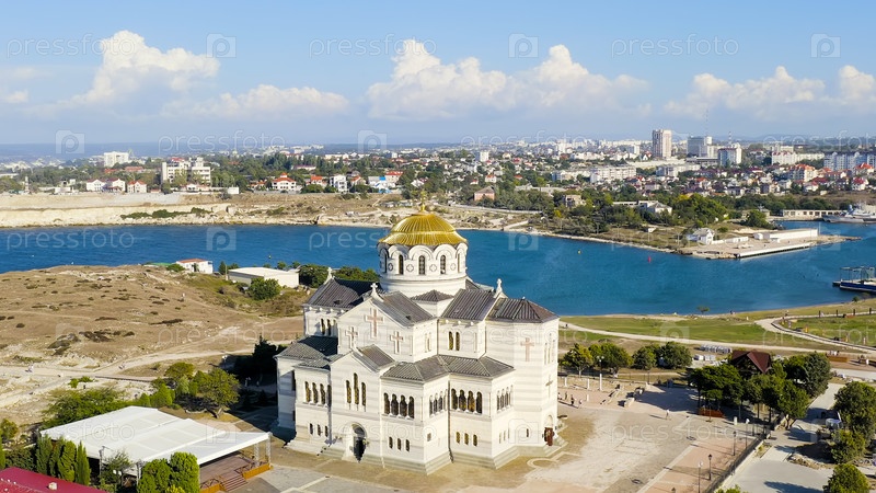 Севастополь, Крым. Владимирский собор в Херсонессе. Херсонская Таурида - основана древними греками на полуострове Геркулеса на крымском побережье, вид с воздуха