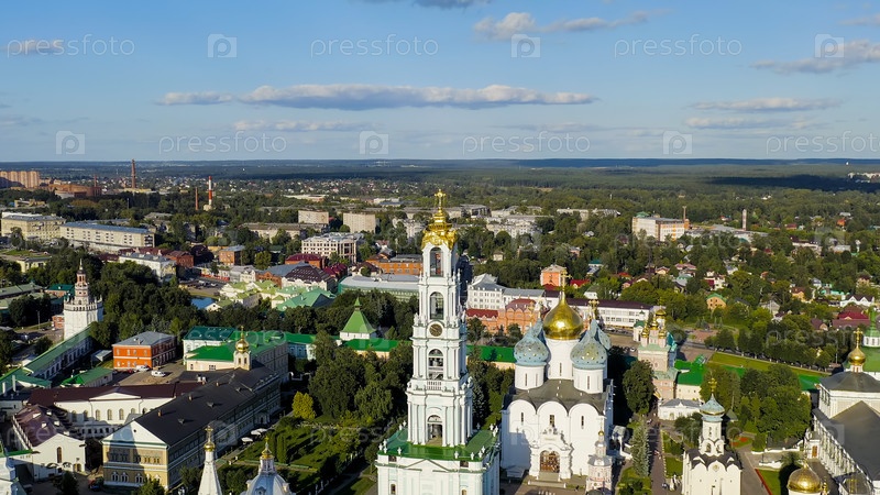 Сергиев Посад, Россия.Троицко-Сергийская лавра - крупнейший мужской монастырь Русской православной церкви с долгой историей.Расположен в центре Сергиева Посады.Солнечный свет, взгляд из воздуха