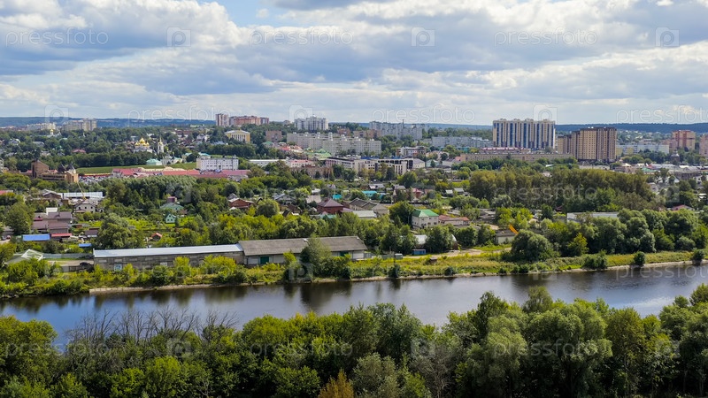 Дмитров, Россия.Московский канал и вид на город Дмитров.Канал, соединяющий реку Москву с Волгой, взгляд из воздуха