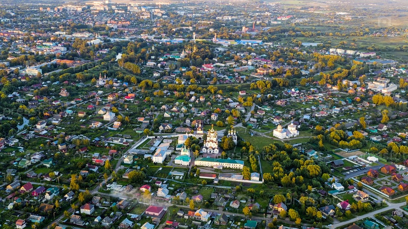 Переславль-Залеский, Россия. монастырь святого Николая Переславского. конвенция. в свете заходящего солнца вид с воздуха