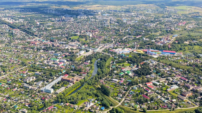 Вид на центр города в пасмурную погоду, вид с воздуха