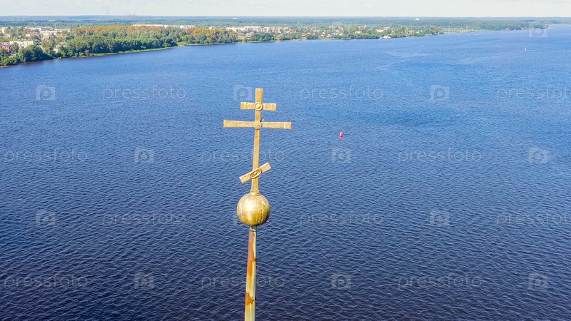 Колокольня собора Святого Николая (известная как затопленный колокол), вид с воздуха