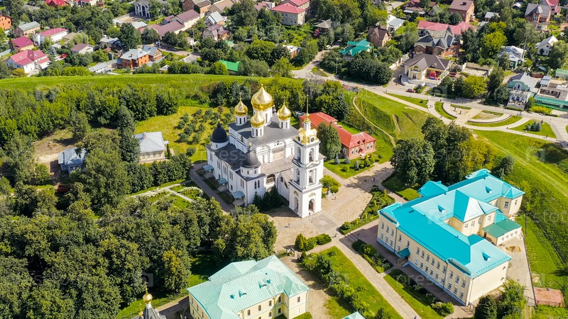 Дмитров, Россия.Собор Вознесения Пресвятой Богородицы расположен в Кремле имени Дмитрива.Архитектурный памятник начала XVI века, вид с воздуха