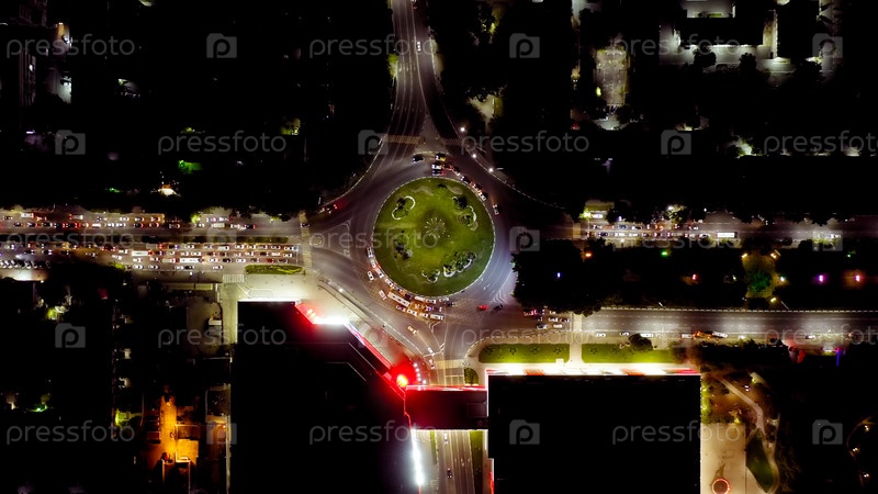 Новороссийск, Россия. Кольцо Кутузова. Новороссийск ночью. Городские ночные огни, вид с воздуха