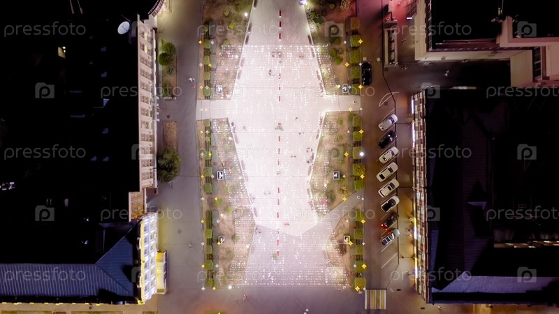Ставрополь, Россия.Ангел-хранитель города Креста.Площадь Александра.Ночь, вид с воздуха, голова над головой выстрел