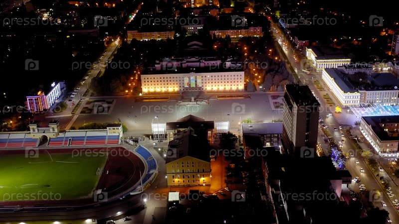 Ставрополь, Россия.Площадь Ленина.Стадион 'Динамо', Дума Ставропольского края.Ночь, вид с воздуха