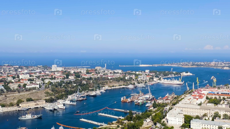 Севастополь, Крым. заливы города Севастополя летом в солнечную погоду. суда, вид с воздуха