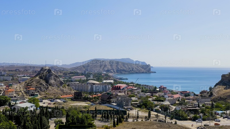 Судак, Крым. набережная Судака. побережье Черного моря с пляжами, Aerial View Sud