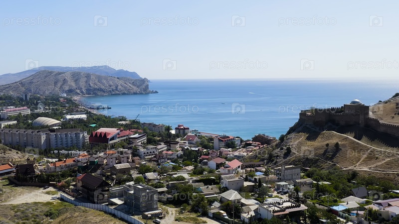 Судак, Крым. набережная Судака. побережье Черного моря с пляжами, Aerial View Sud