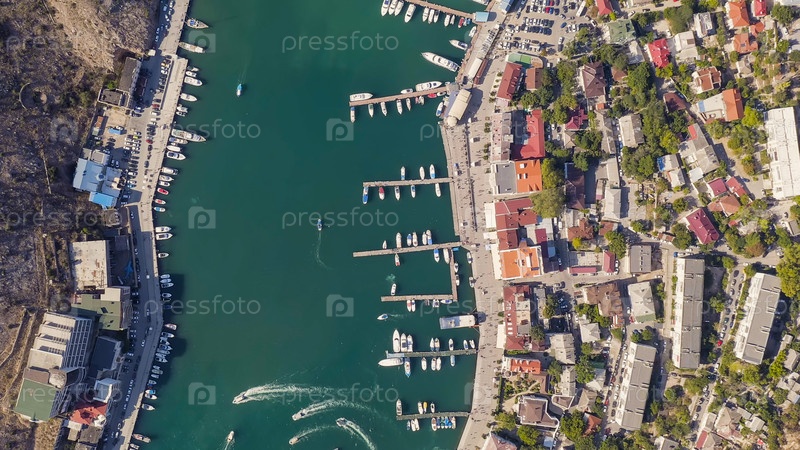 Балаклавская бухта с яхтами и рекреационными лодками, Aerial View