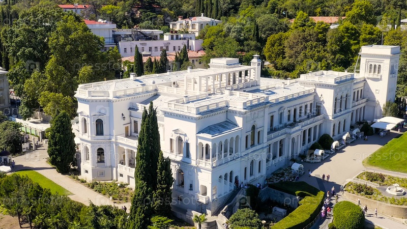 Ливадийский дворец - расположен на побережье Черного моря в деревне Ливадия, Ялтинская область Крыма, вид с воздуха