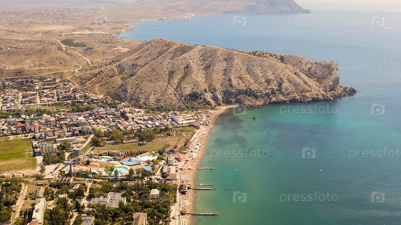 Судак, Крым. набережная Судака. побережье Черного моря с пляжами, Aerial View Sud