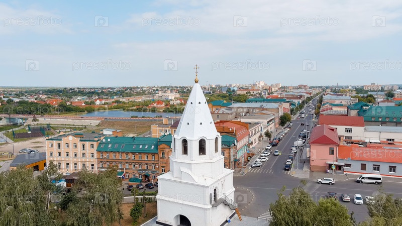 Сизран, Россия 21 августа 2021: Кремль Сызрана. Церковь Рождества Христова, Air View