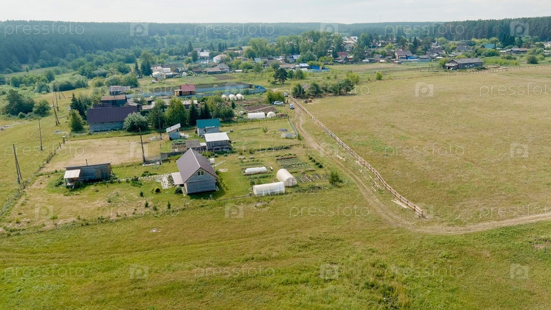 Россия, Урал.Летать над полями.Деревенские дома, вид с воздуха