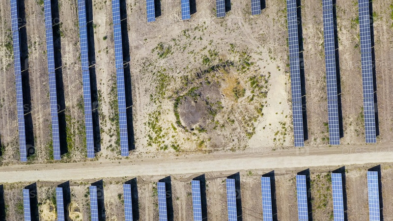 Солнечная электростанция в ясный солнечный день, Aerial View