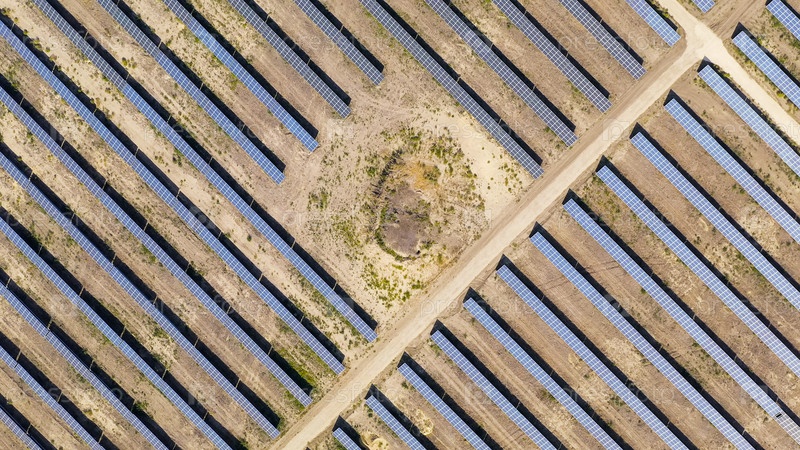 Солнечная электростанция в ясный солнечный день, Aerial View