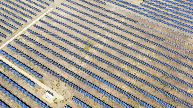 Солнечная электростанция в ясный солнечный день, Aerial View
