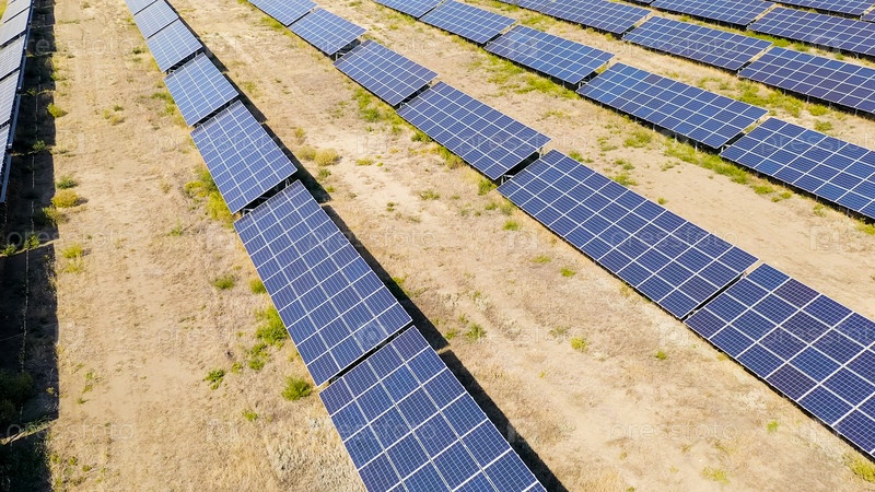 Солнечная электростанция в ясный солнечный день, Aerial View